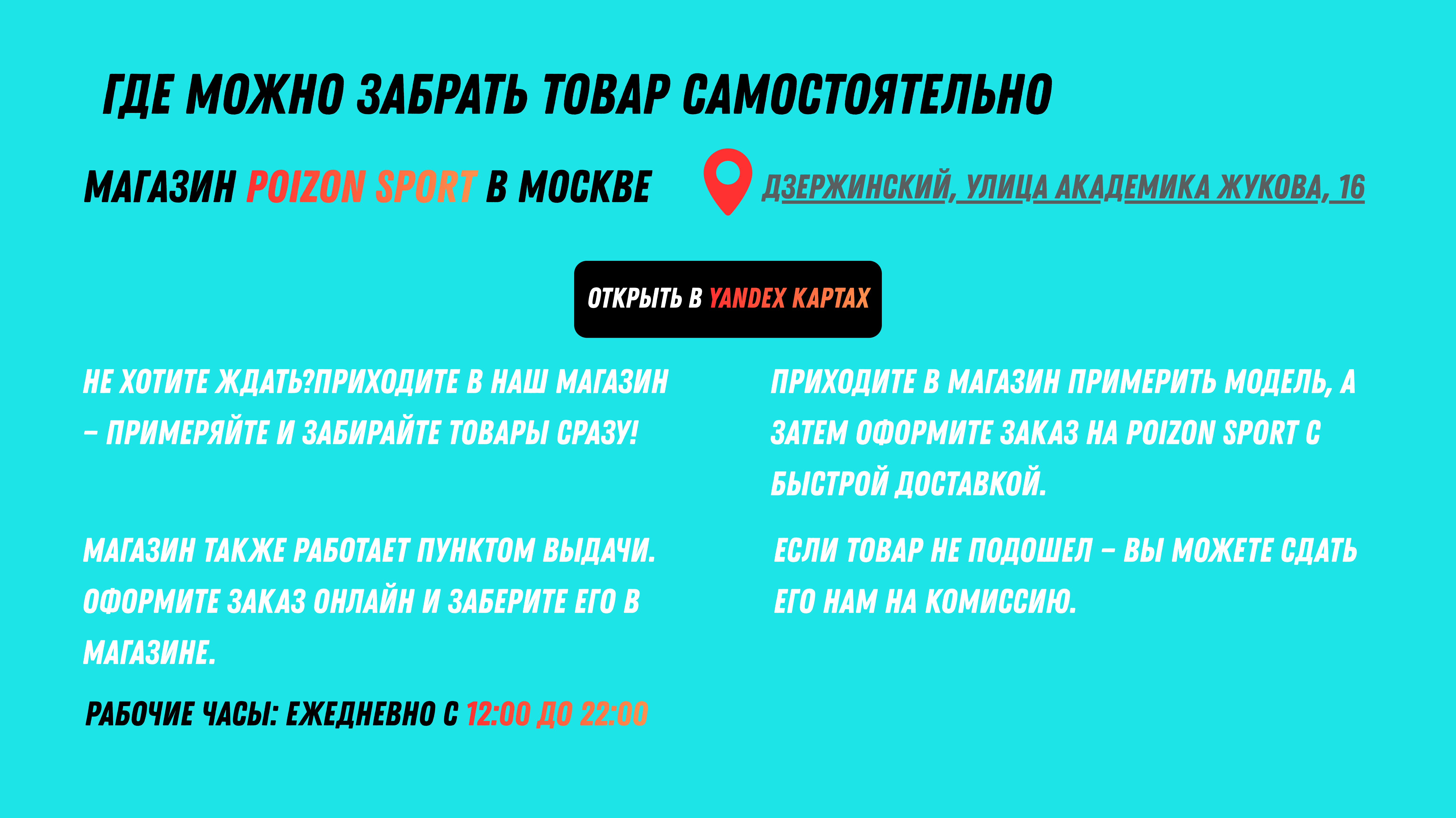 Рабочие часы:С понедельника по воскресенье 12:00 — 22:00